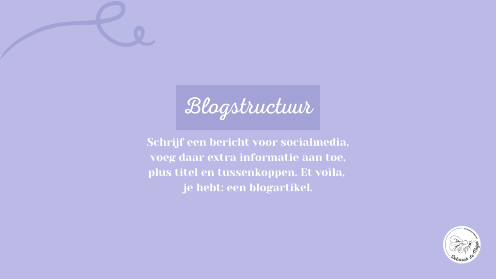 Wat is mijn gouden tip? Schrijf eerst een bericht voor socialmedia. Zo maak je niet alleen de drempel naar een blogpost lager, ook geeft het je een houvast. Een opzet voor een blogartikel. Een structuur.