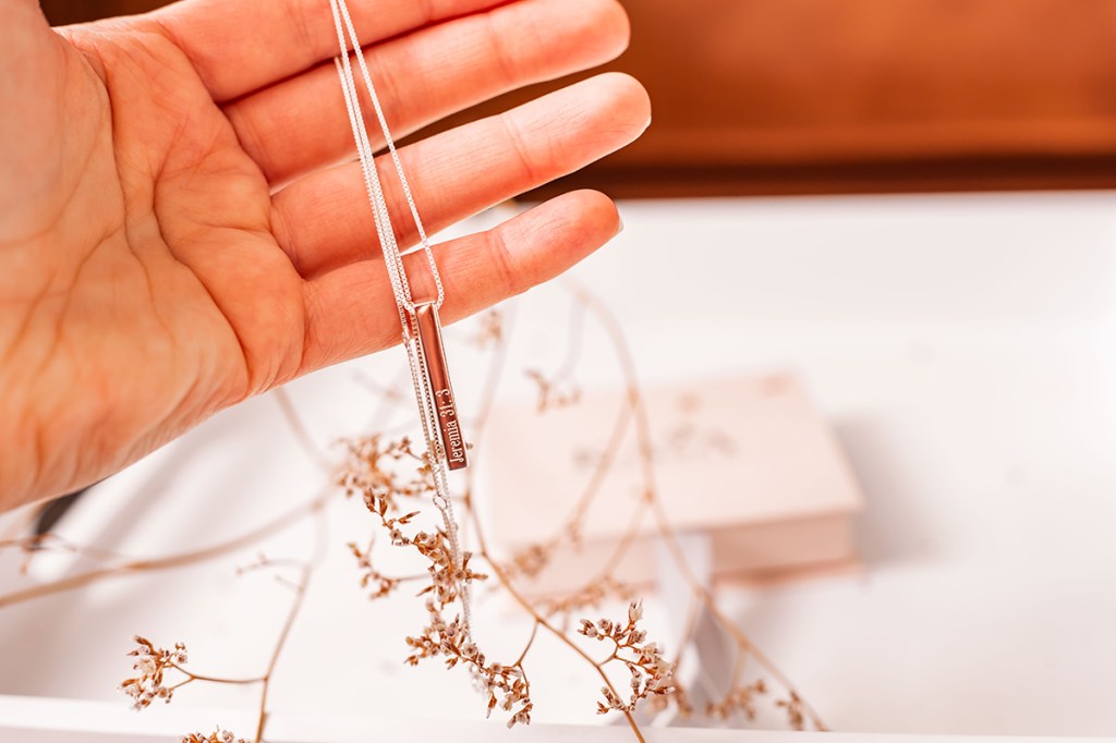 Dit jaar herinnert KAYA Sieraden mij ruim op tijd aan Moederdag. Nog leuker: ik mag een sieraad voor mijn moeder uitkiezen om cadeau te geven. Ik gok dat mijn moeder dat weleens heel tof zou vinden. Een paar jaar geleden kreeg ik van haar een armband met de tekst ‘Believe in yourself’ op de voorkant en binnenin: ‘Everything is possible’. Het leek me daarom mooi om mijn moeder een sieraad te geven met een persoonlijke boodschap erin gegraveerd. Mijn moeder houdt van een minimalistische stijl. Ik klik op de categorie ‘ketting dames’ en mijn oog valt op een redelijk simpele maar tegelijkertijd stijlvolle ketting: een ketting van sterling zilver met een rechthoekige staaf als hanger. Het mooiste: op élke zijkant kan ik een woord laten graveren. Deze ketting vind ik, en ik denk mijn moeder ook, unieker dan een standaard rondje of hartje met gravering. Dus is mijn keuze gemaakt.