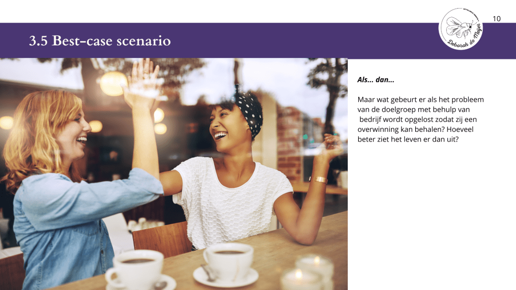 > Werk jij als zzp’er? Mijn advies: houd rekening dat je na de brainstormsessies nog wat tijd nodig hebt om jouw marketinggids in de praktijk uit te voeren.