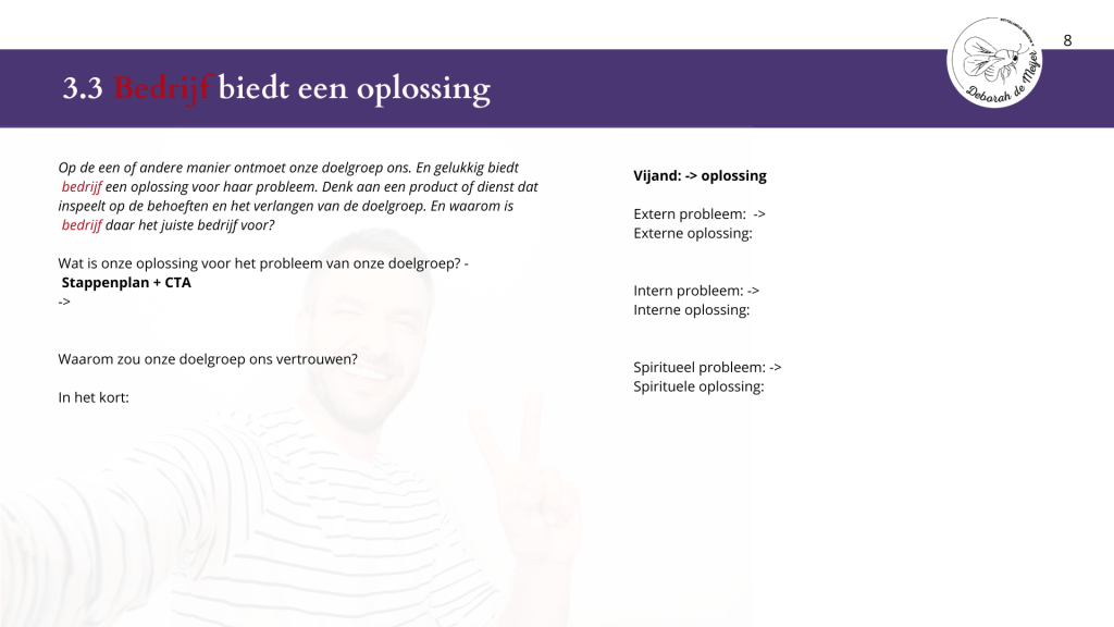 - Je hoofd zit vol met geweldige ideeën over jouw bedrijf en de koers die je op wilt, maar hoe maak je dit overzichtelijk en kom je tot woorden die je doelgroep begrijpt?;